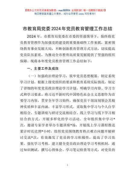 / 市教育局党委2024年党员教育管理工作总结