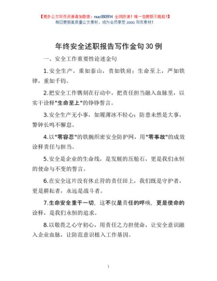 / 年终安全述职报告写作金句30例