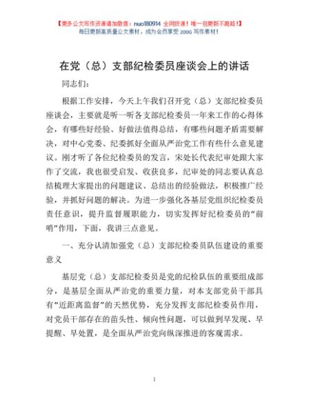/ 在党(总)支部纪检委员座谈会上的讲话
