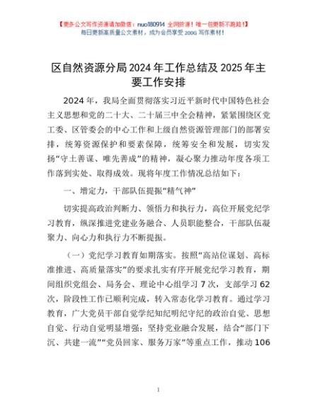 / 区自然资源分局2024年工作总结及2025年主要工作安排