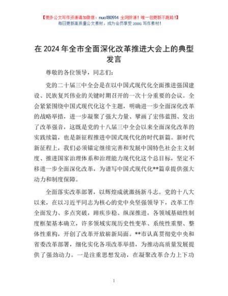 / 在2024年全市全面深化改革推进大会上的典型发言