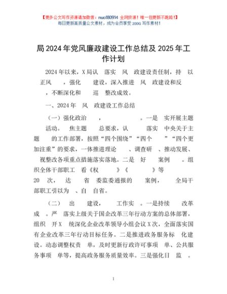 / 局2024年党风廉政建设工作总结及2025年工作计划