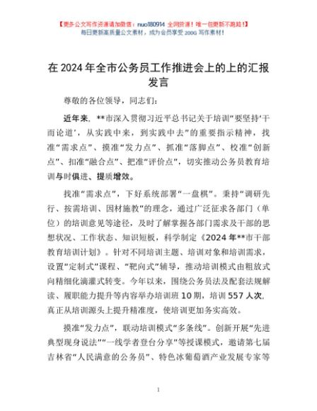 / 在2024年全市公务员工作推进会上的上的汇报发言