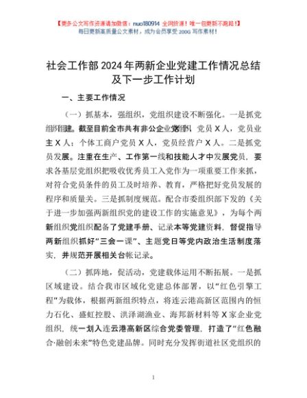 / 社会工作部2024年两新企业党建工作情况总结及下一步工作计划