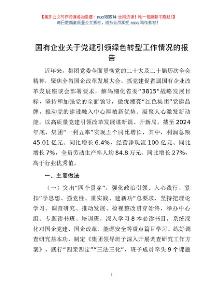 / 国有企业关于党建引领绿色转型工作情况的报告