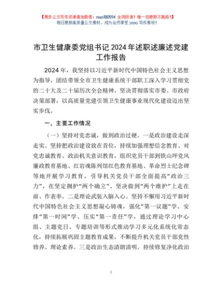/ 市卫生健康委党组书记2024年述职述廉述党建工作报告