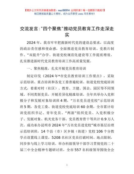 交流发言:”四个聚焦”推动党员教育工作走深走实