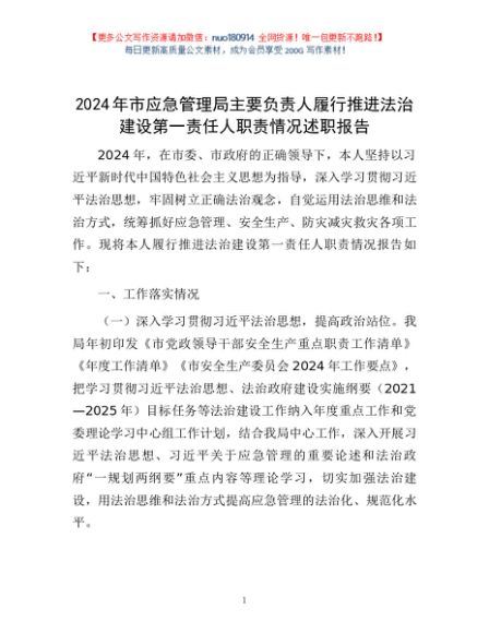 / 2024 年市应急管理局主要负责人履行推进法治建设第一责任人职责情况述职报告