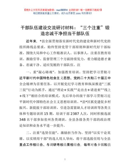 干部队伍建设交流研讨材料:“三个注重”锻造忠诚干净担当干部队伍