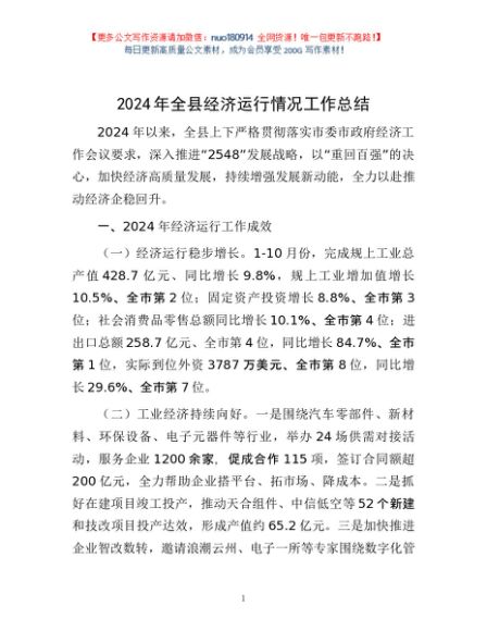 2024年全县经济运行情况工作总结