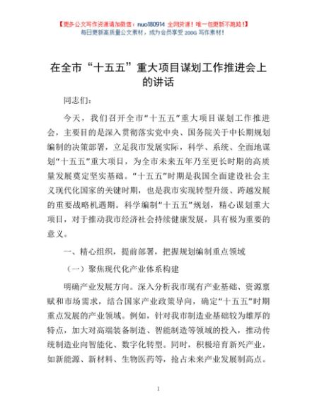 / 在全市 “十五五” 重大项目谋划工作推进会上的讲话