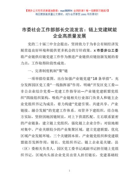 / 市委社会工作部部长交流发言:链上党建赋能企业高质量发展