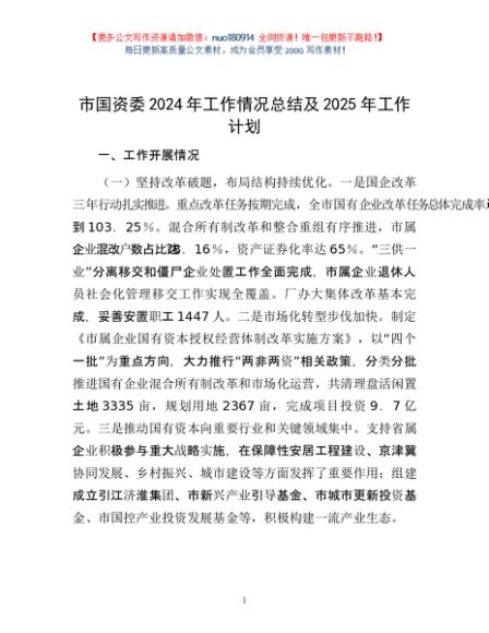 / 市国资委2024年工作情况总结及2025年工作计划