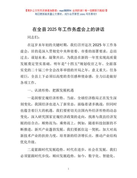 / 在全县2025年工作务虚会上的讲话