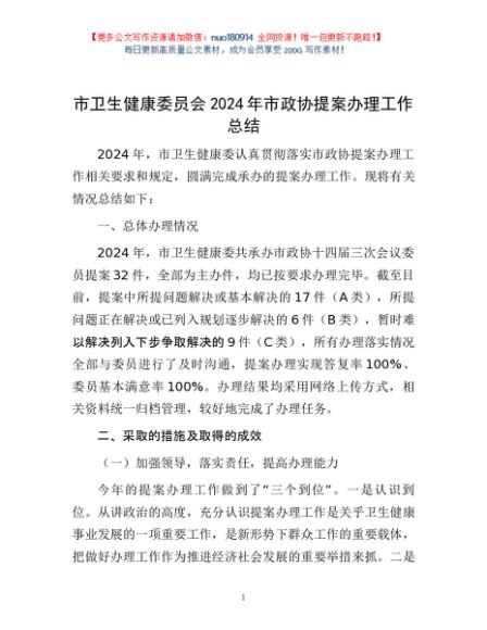 / 市卫生健康委员会2024年市政协提案办理工作总结