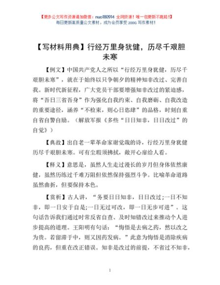【写材料用典】行经万里身犹健,历尽千艰胆未寒