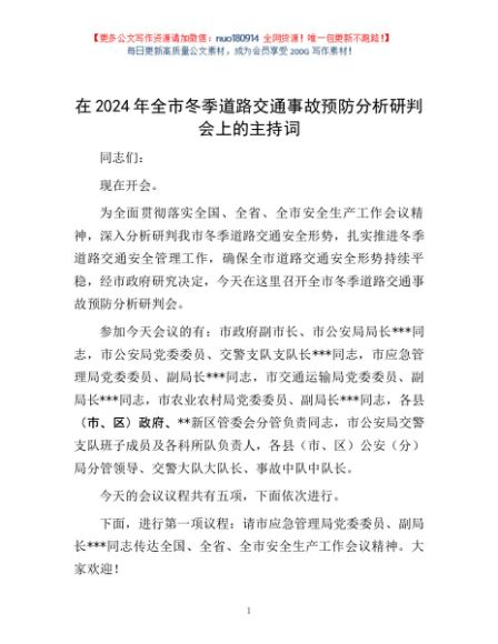 / 在2024年全市冬季道路交通事故预防分析研判会上的主持词