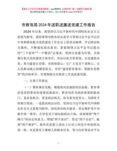 / 市教育局2024年述职述廉述党建工作报告