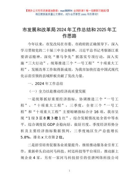 / 市发展和改革局2024年工作总结和2025年工作思路