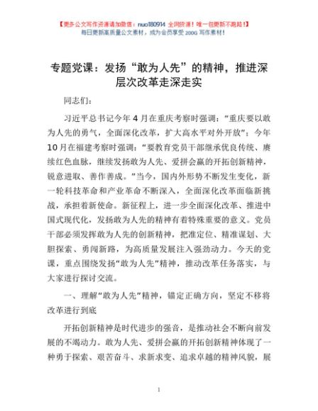 / 专题党课:发扬“敢为人先”的精神,推进深层次改革走深走实