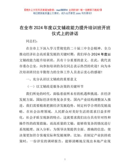 / 在全市2024年度以文辅政能力提升培训班开班仪式上的讲话
