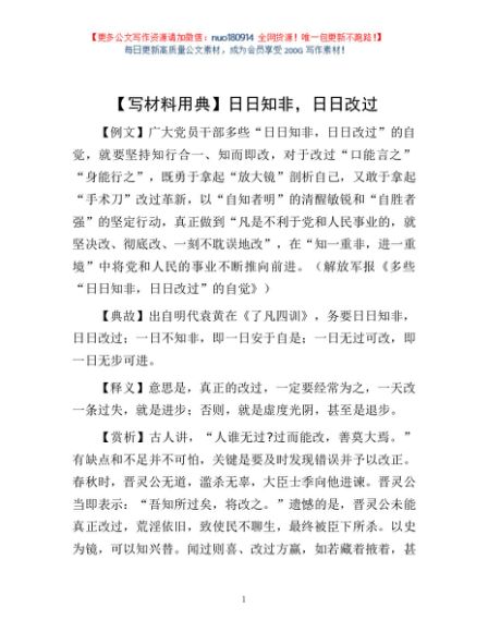 / 【写材料用典】日日知非,日日改过