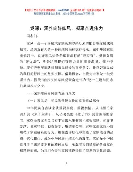 / 党课:涵养良好家风,凝聚奋进伟力