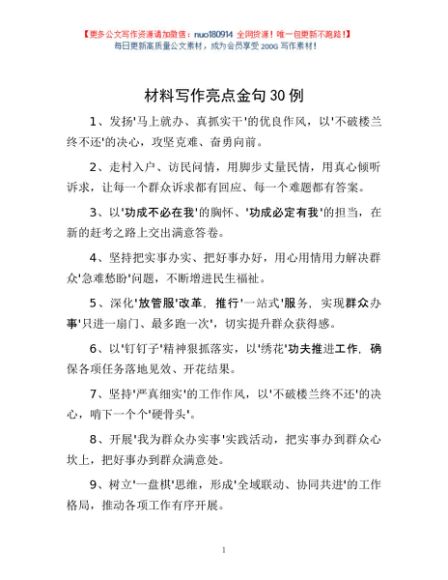 / 材料写作亮点金句30例