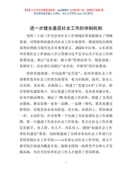 / 进一步健全基层社会工作的体制机制