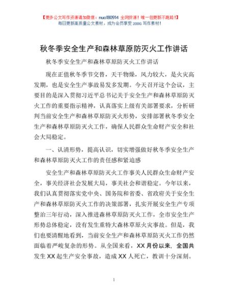 / 秋冬季安全生产和森林草原防灭火工作讲话