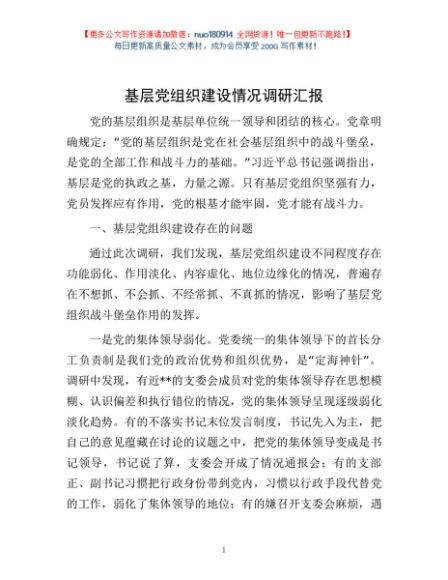 / 基层党组织建设情况调研汇报