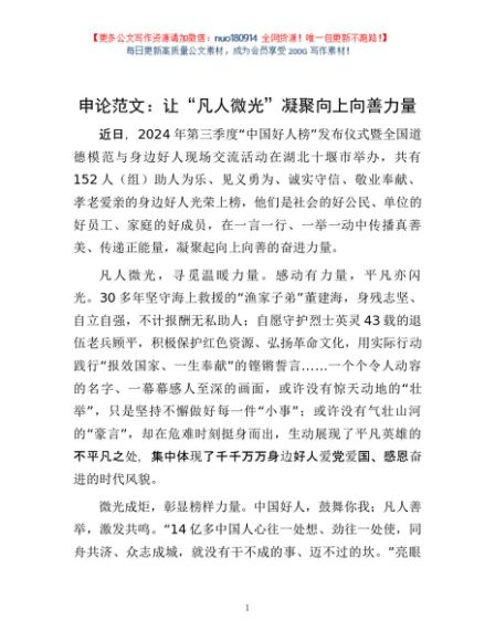 / 申论范文:让“凡人微光”凝聚向上向善力量