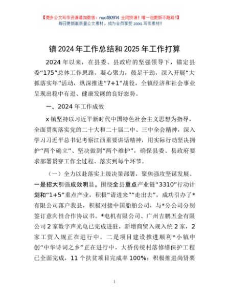 / 镇2024年工作总结和2025年工作打算
