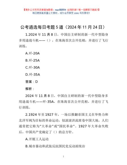 / 公考遴选每日考题5道(2024年11月24日)