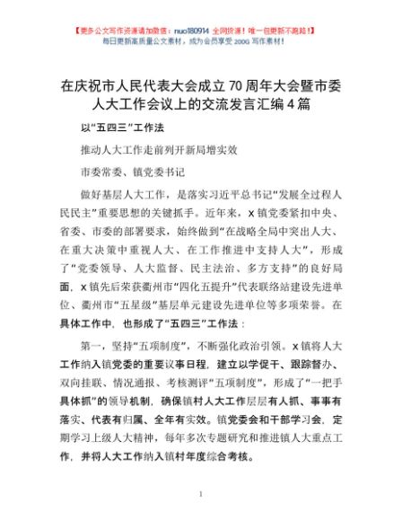 / 在庆祝市人民代表大会成立70周年大会暨市委人大工作会议上的交流发言汇编4篇