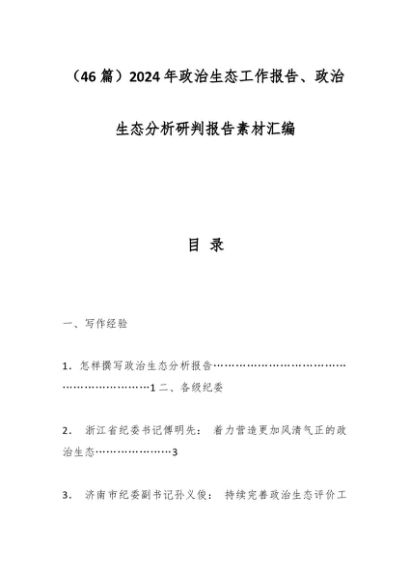 / (46篇)2024年政治生态工作报告、政治生态分析研判报告素材汇编