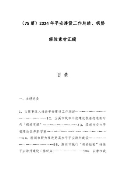 / (75篇)2024年平安建设工作总结、枫桥经验素材汇编