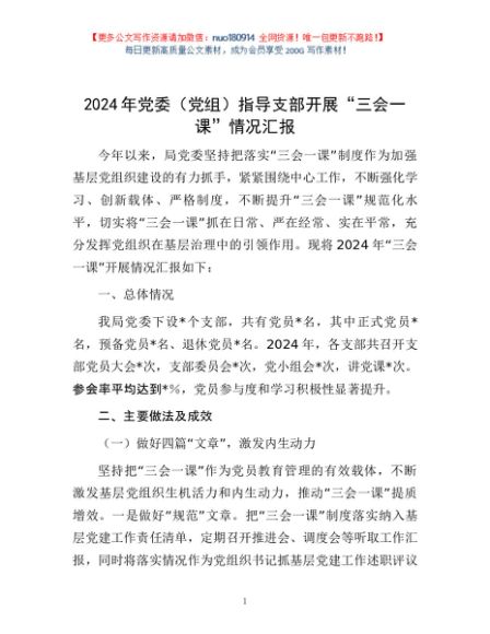 / 2024年党委(党组)指导支部开展“三会一课”情况汇报