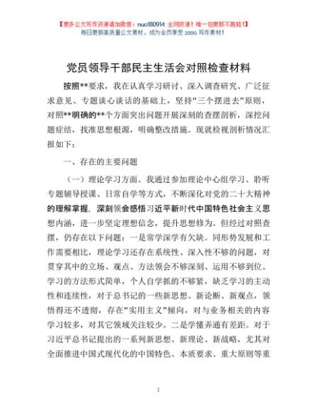 / 党员领导干部民主生活会对照检查材料