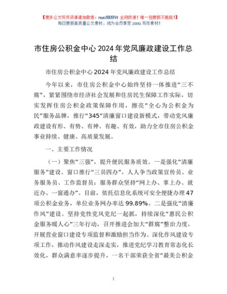 市住房公积金中心2024年党风廉政建设工作总结