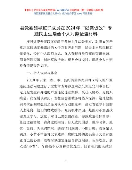 / 县党委领导班子成员在2024年“以案促改”专题民主生活会个人对照检查材料