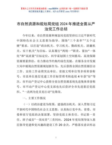 / 市自然资源和规划局党组2024年推进全面从严治党工作总结