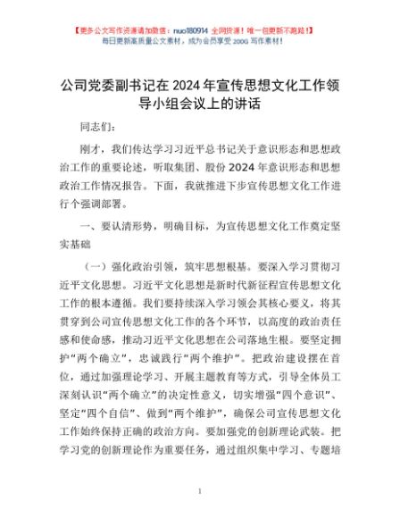 / 公司党委副书记在2024年宣传思想文化工作领导小组会议上的讲话