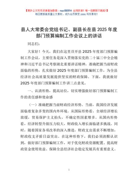 / 县人大常委会党组书记、副县长在县2025年度部门预算编制工作会议上的讲话