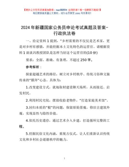 / 2024年新疆国家公务员申论考试真题及答案-行政执法卷