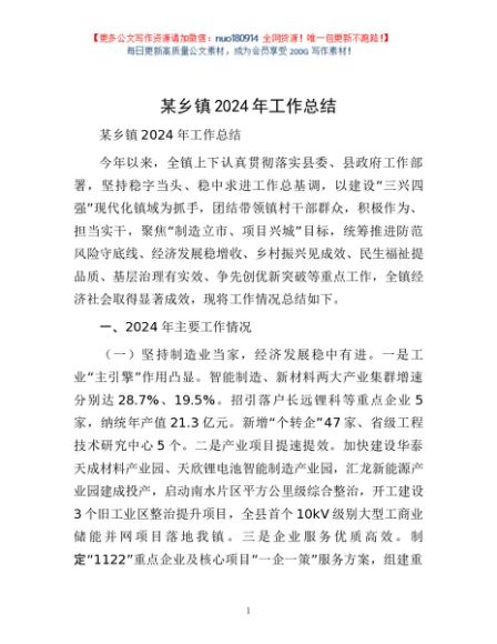 / 某乡镇2024年工作总结