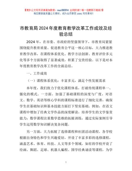 / 市教育局 2024 年度教育教学改革工作成效及经验总结