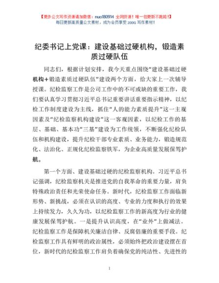纪委书记上党课:建设基础过硬机构,锻造素质过硬队伍