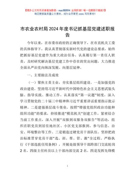 / 市农业农村局2024年度书记抓基层党建述职报告