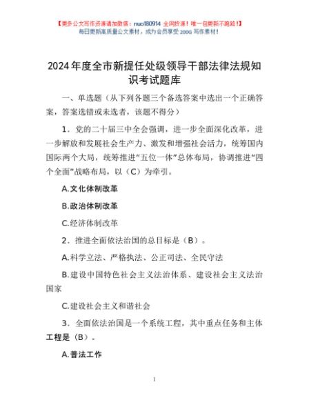 / 2024年度全市新提任处级领导干部法律法规知识考试题库